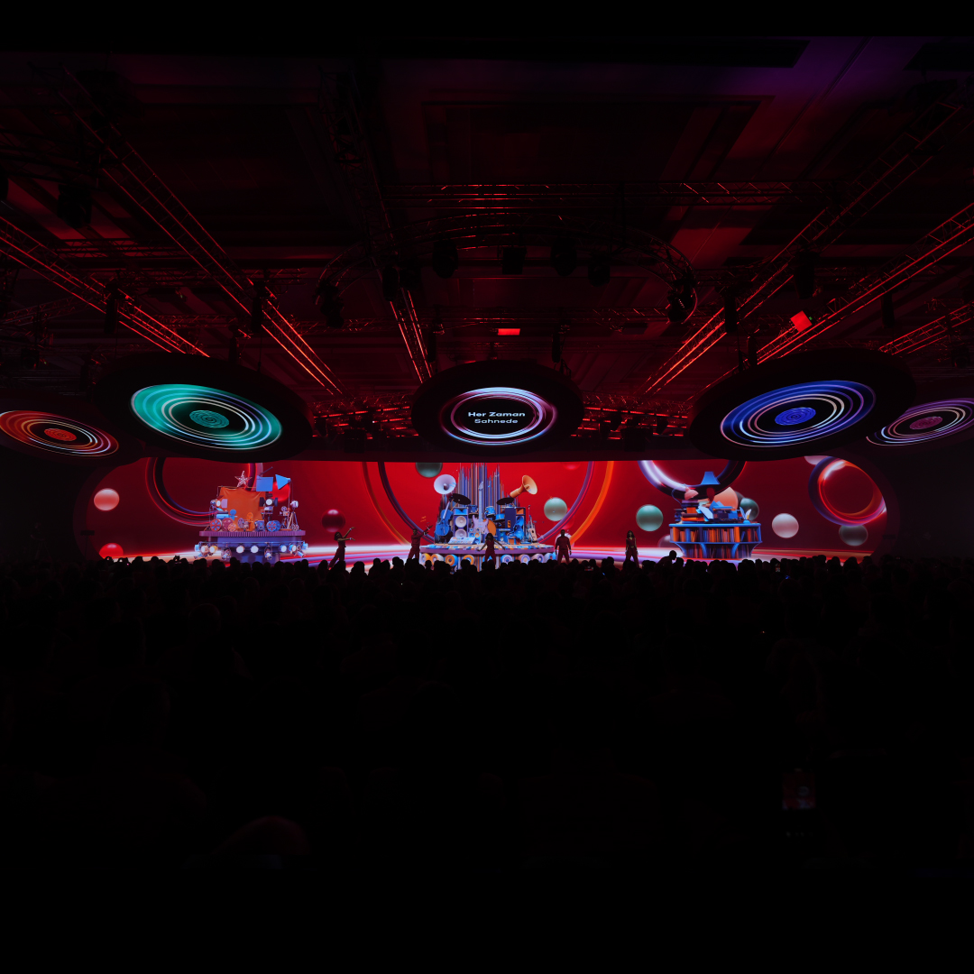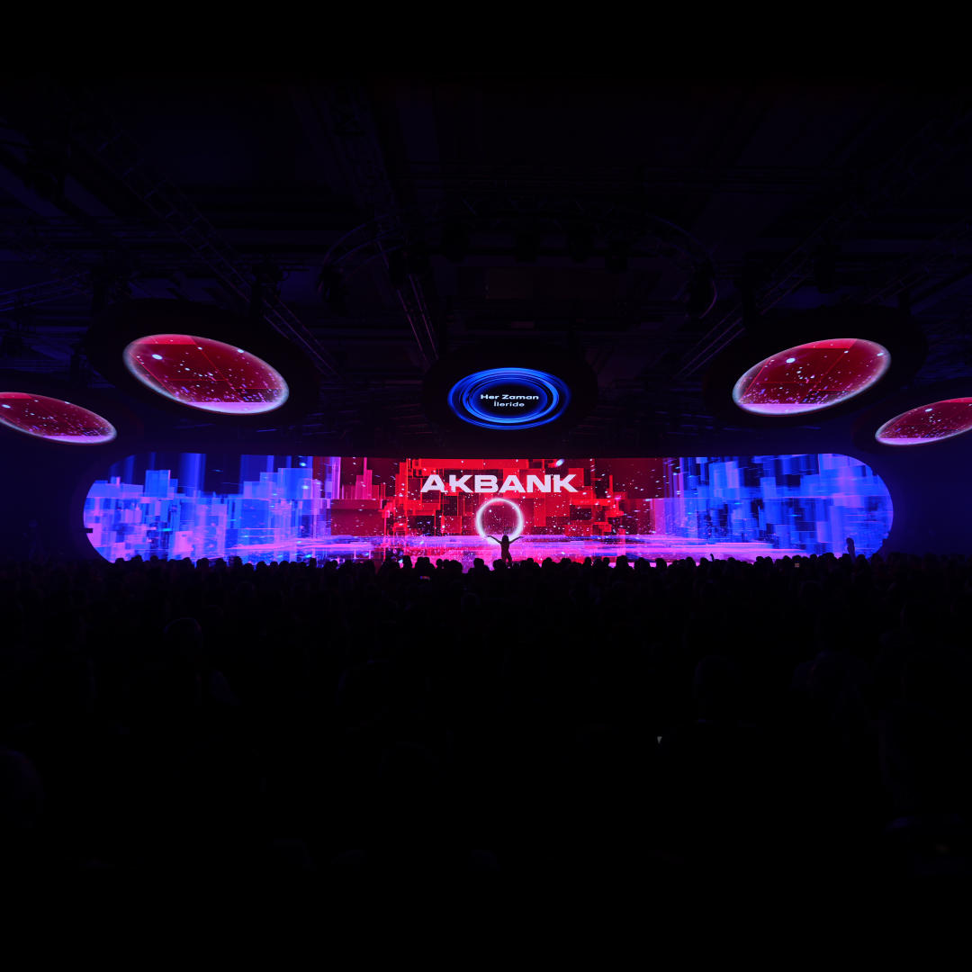 Together with Venn and HEYMO, we created immersive motion content for Akbank’s 2025 Leaders Summit. The experience featured a massive stage setup with five moving overhead screens and live dancers, synchronized perfectly with the visuals.
