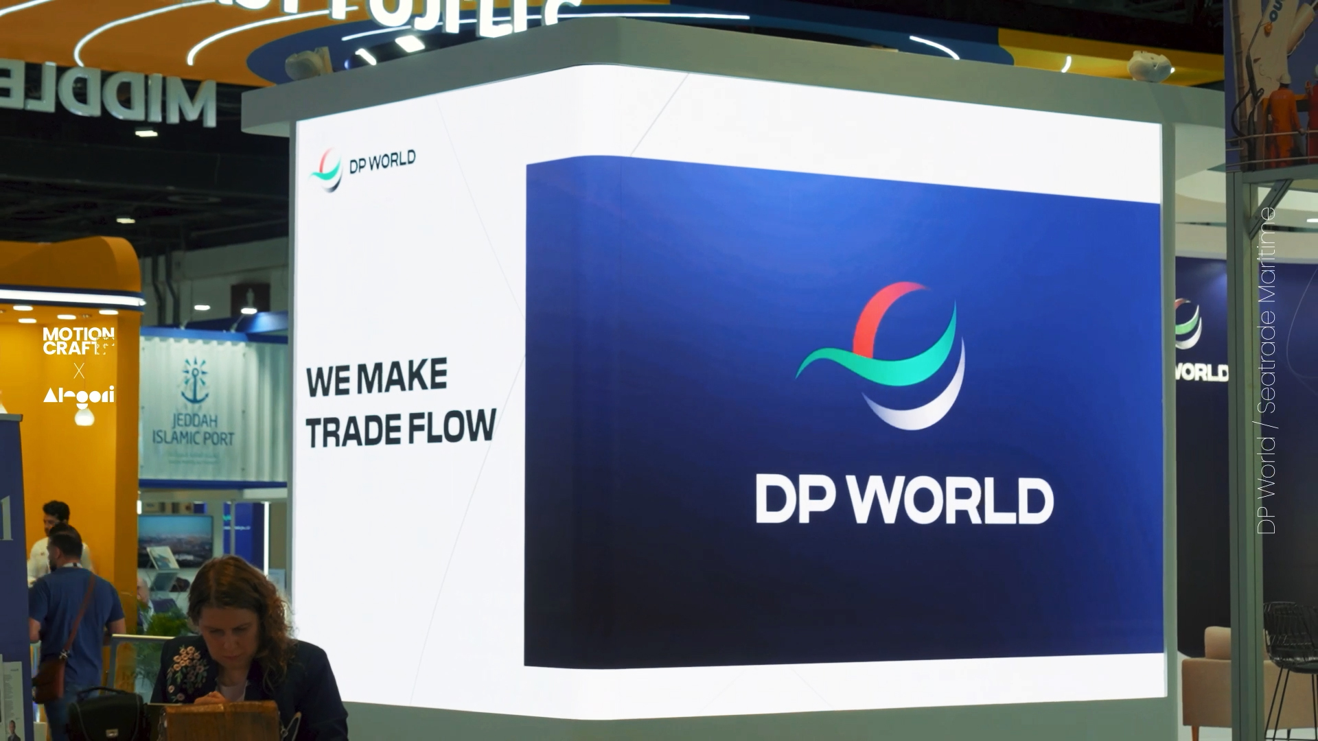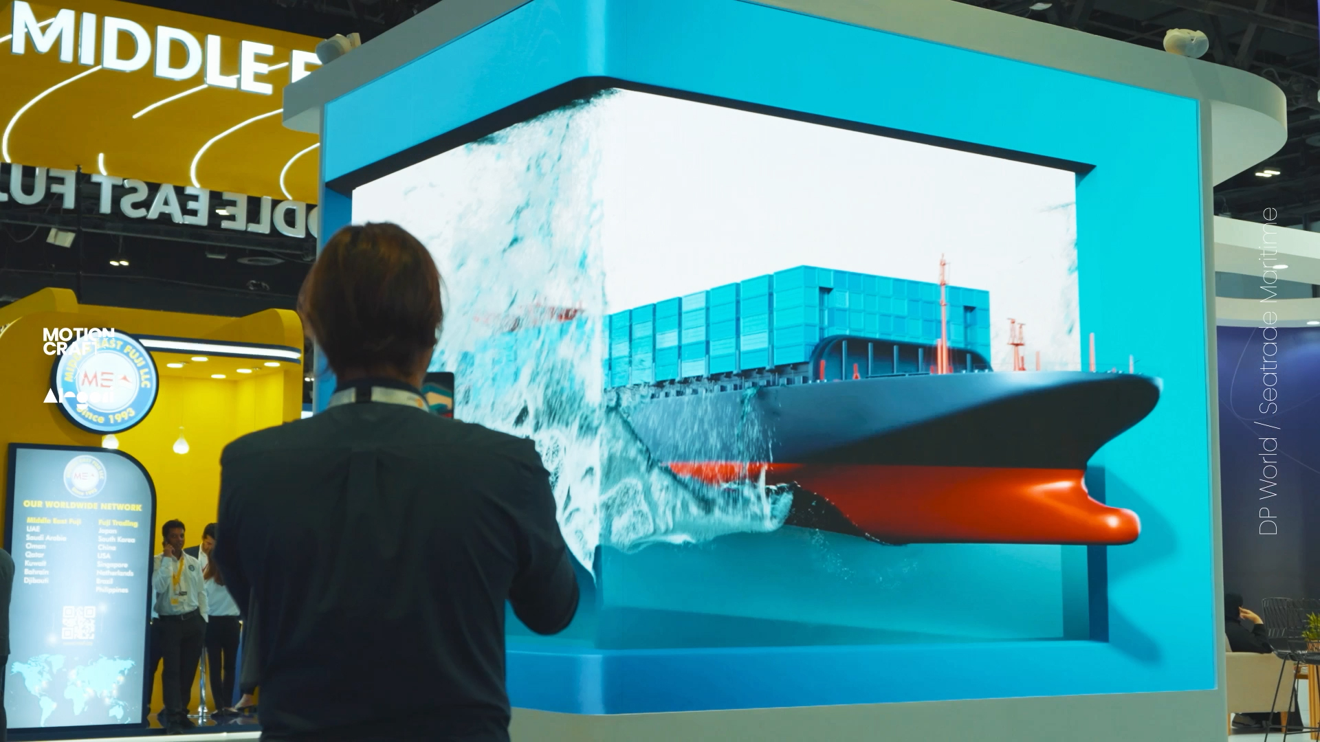 We collaborated with Alegori Studio to produce anamorphic content for DP World’s exhibition stand at the Dubai World Trade Centre 2023. The film followed the journey of a single cargo package moving across trucks, ships and aircraft, visualizing a story of smart logistics powered by technology.