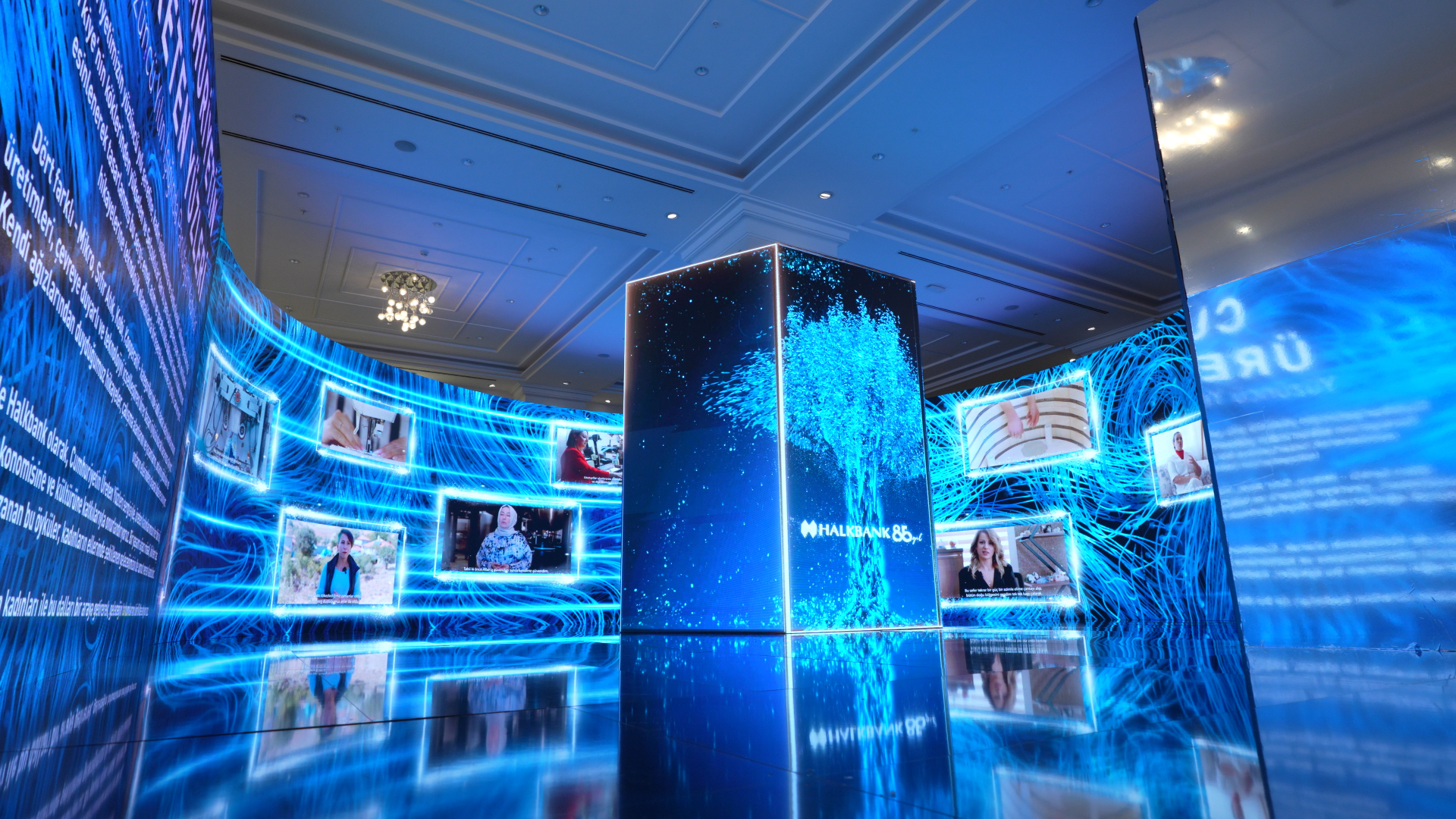 We worked with Venn to create motion content for the Üreten Kadınlar event by Halkbank, celebrating women entrepreneurs from across Turkey. From holographic visuals to digital exhibits and stage design, the experience was built to reflect the strength, creativity and ambition of these inspiring women.